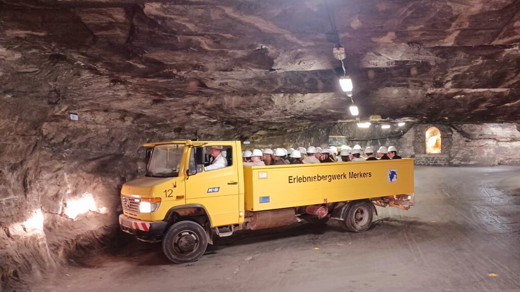 Bei einer eindrucksvollen Führung durch das ehemalige Bergwerk tauchten die Schülerinnen und Schüler tief in die faszinierende Welt unter Tage ein. Mit Besucherfahrzeugen in Form offener LKWs wurden sie rasant zu den einzelnen Stationen der Tour gebracht. Bereits die Einfahrt in das Bergwerk war ein besonderes Erlebnis: Mit dem Aufzug ging es innerhalb von nur 90 Sekunden auf eine Tiefe von rund 500 Metern. Vor Ort erkundeten die Jugendlichen weitläufige Stollen, bestaunten beeindruckende Salzkristalle und erhielten anschauliche Einblicke in die Arbeitsabläufe und Tätigkeiten im Bergbau. So wurden auch Aspekte der Berufsorientierung auf praktische Weise erfahrbar.