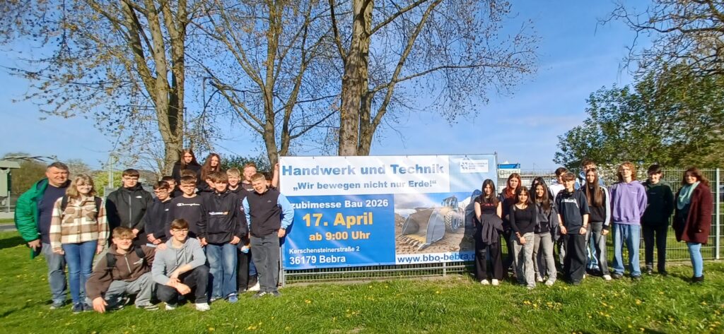 Die Klassen 9aR und 9bR der Adam-von-Trott-Schule besuchten am 17.04.2026 gemeinsam die Azubi-Messe Bau 2026 in Bebra. Begleitet wurden die Schülerinnen und Schüler von ihren Klassenlehrern Jörg Rittenbach und Nicole Albrecht.